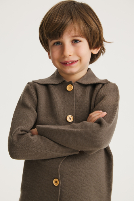 In the Milo Shirt-Jacket, subtle elegance weaves perfectly with everyday comfort. Made from merino wool, it’s incredibly soft, cozy, and ideal from autumn through spring—or even for those chilly summer evenings in the mountains. The structured collar and wooden buttons add a refined yet relaxed touch. Whether worn as a light jacket or a cozy shirt, it remains a timeless essential in every child’s wardrobe.